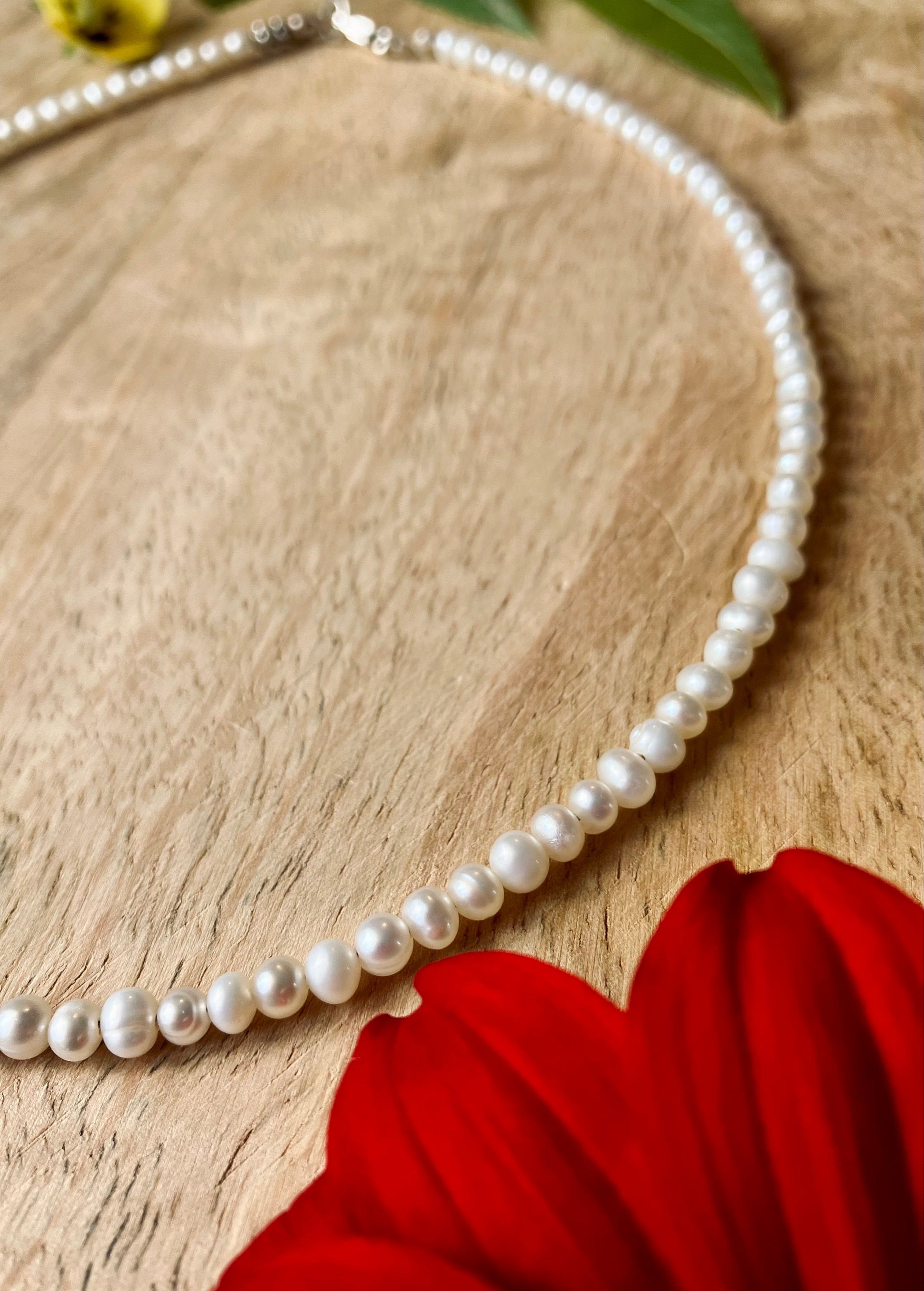 Genuine White Freshwater pearl necklace 3mm pearl size. Sterling silver clasp - 16 inches. Minimalist jewellery, gift for her, sea jewellery